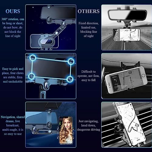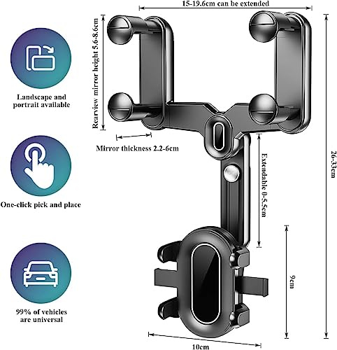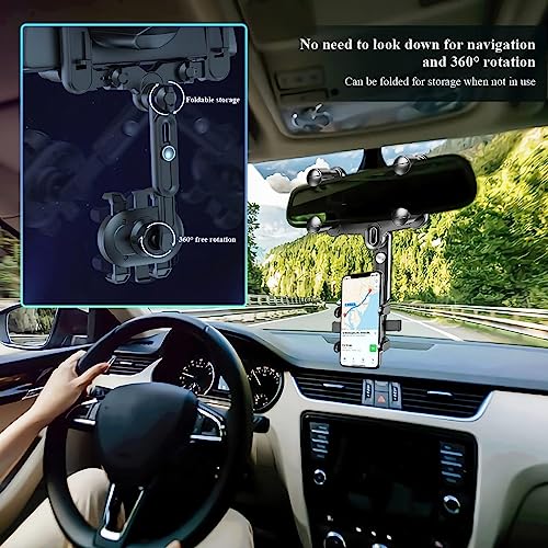 Generic - حامل هاتف بمرآة الرؤية الخلفية للسيارة، حامل هاتف سيارة جديد قابل للسحب 360 درجة قابل للدوران 360 درجة مع طول ذراع قابل للتعديل، مناسب لجميع الهواتف الذكية والسيارات - من كابر مصر 2020
