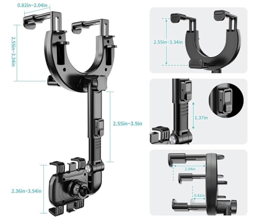 - تركيب متعدد الاستخدامات: حامل موبايل لمرآة الرؤية الخلفية مع ذراع قابل للتعديل يدعم كلا من الاتجاهات الرأسية والأفقية للحصول على زوايا رؤية مثالية
