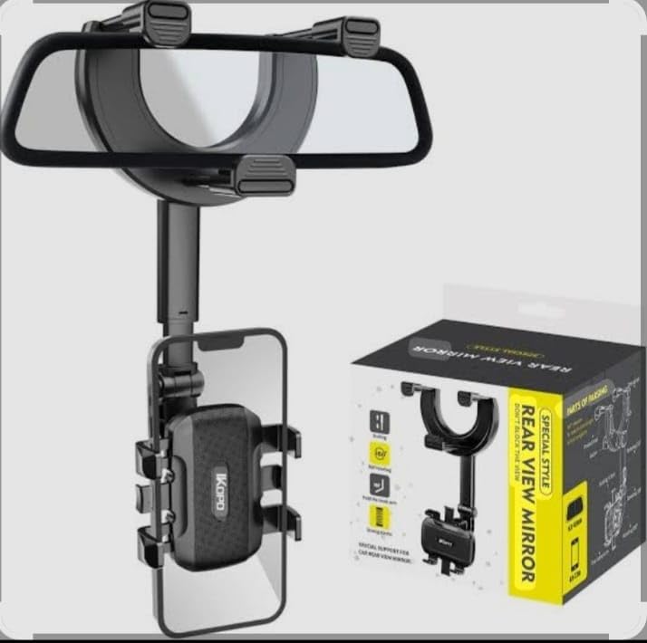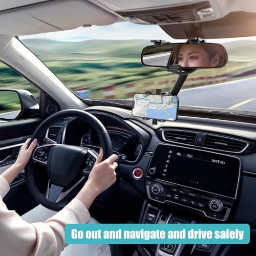 Generic - حامل موبايل يثبت على مراة الرؤية الخلفية للسيارة، حامل موبايل قابل للتعديل، متوافق مع الصورة والمناظر الطبيعية