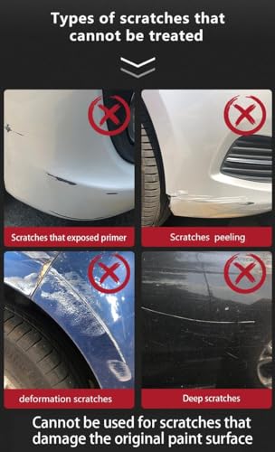 - مناسبة للسيارات من أي لون -- مجموعة إصلاح خدوش السيارة هذه لا تختار الألوان. يمكن أن تعمل على أي سيارة من أي لون، ولكن يرجى التأكد من عدم وجود طلاء كريستالي أو طبقة حماية للطلاء. لا يعمل على الخدوش العميقة والكبيرة مثل البرايمر المكشوف أو البلاستيك الأسود أو المساحة الكبيرة من البرايمر أو الحفر الواضح أثناء لمس اليد.