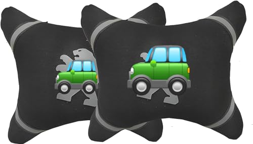 Generic - طقم وسادة راس لكرسي السيارة 2 قطعة لون اسود متواقة مع بي$$جو، الياف
