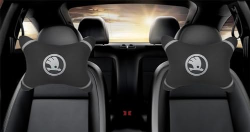 Generic - طقم وسادة راس لكرسي السيارة 2 قطعة لون اسود متواقة مع سك$$ود$$دا، الياف