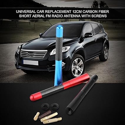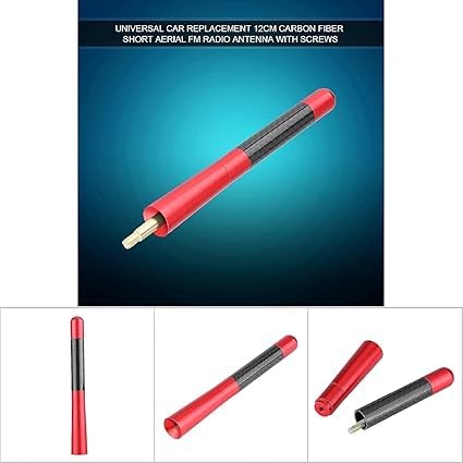 Generic - هوائي سقف قصير للسيارة 12 سم هوائي سيارة عالمي ألومنيوم سقف هوائي من ألياف الكربون للسيارة ديكور هوائي أسود - لون احمر كاربون -SA CAR
