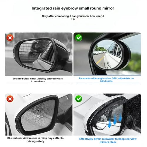 Generic - مراية جانبية للسيارة مع واقي من المطر ومراية صغيرة الحجم - رؤية محسنة وحماية من المطر