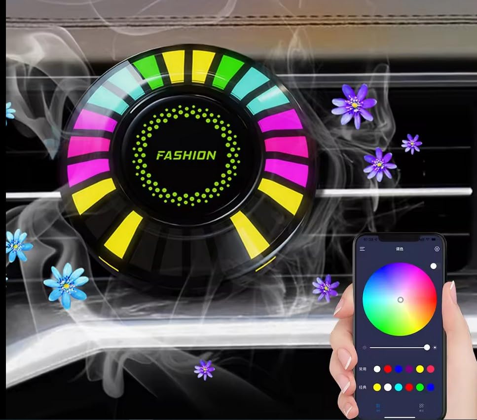 - مصباح موسيقى ليد إيقاعي يعمل بالصوت للسيارة مع معطر ومشبك فتحة التهوية - كما يمكن ربطة بالهاتف للتحكم في الاضاءة