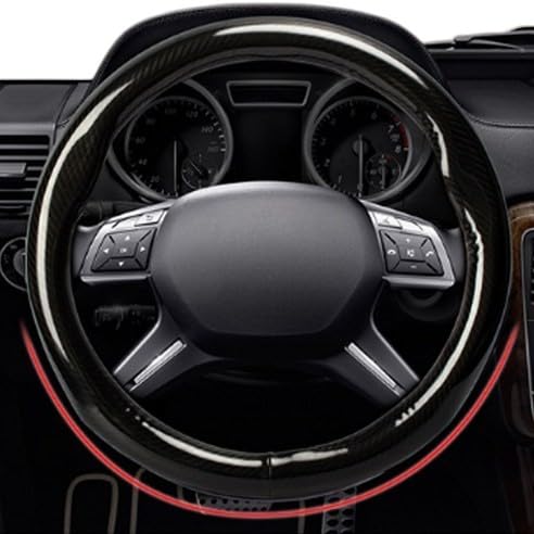 Generic - جراب طارة غطاء طارة دركسيون للسيارة للنساء والرجال ، مصنوع من الكاربون فائق الجودة ، يناسب سيارات الركوب العادية و سيارات الدفع الرباعي بتصميم دائري (اسود لامع)