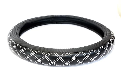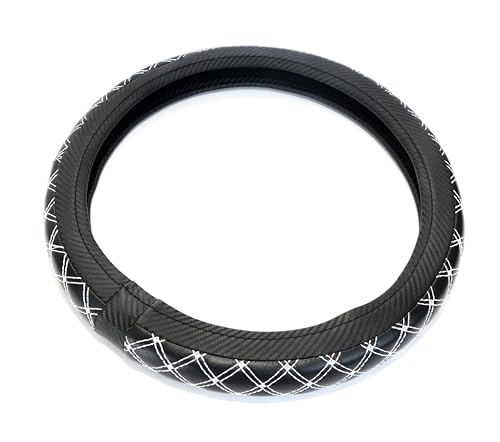 Generic - غطاء طارة دركسيون السيارة من جلد المايكروفايبر غير القابل للانزلاق ومزود بمسامات للتهوية يناسب معظم السيارات، غطاء قبضة مريح، لون أبيض وأسود