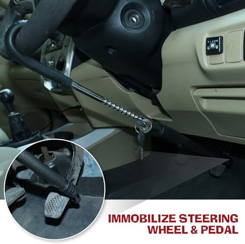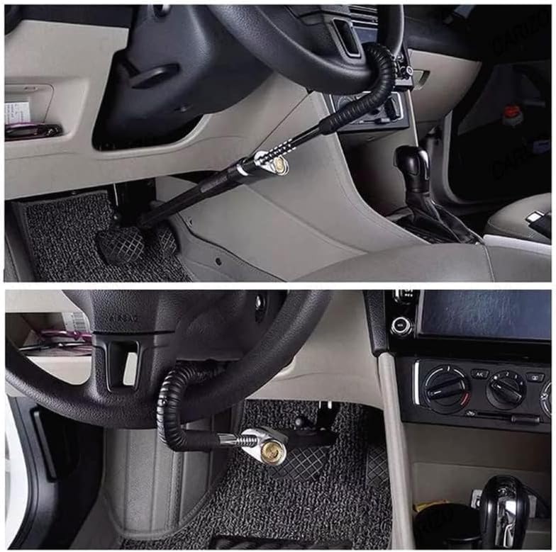 - تثبيت طارة دركسيون السيارة: تم تصميم قفل الدواسة إلى طارة الدريكسيون على شكل خطاف مزدوج لتثبيت طارة دركسيون سيارتك عن طريق توصيلها بالفرامل.