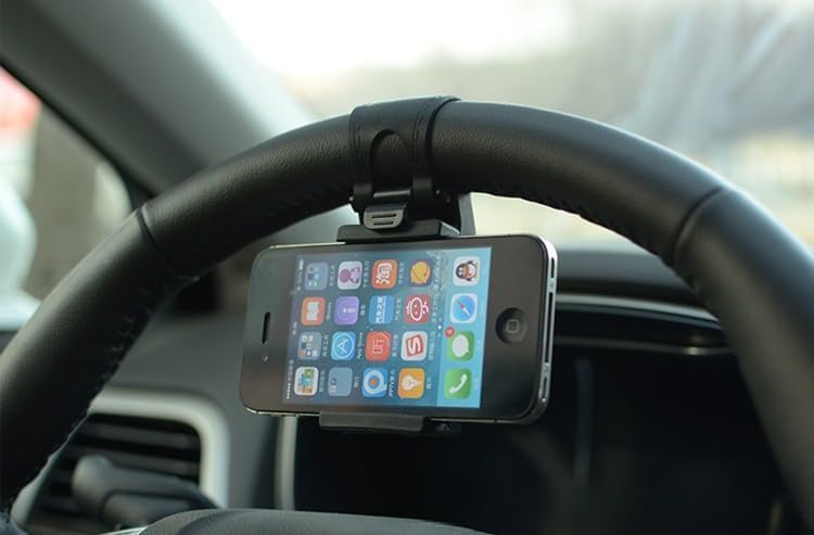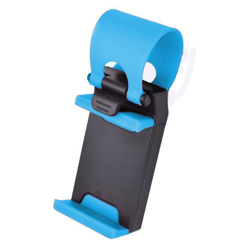 MOBILE MAGIC - حامل موبايل لطارة دركسيون السيارة ويمكن أن يكون موبايلك جزءًا من جميع الأزرار التي تستخدمها على طارة الدركسيون (ازرق)