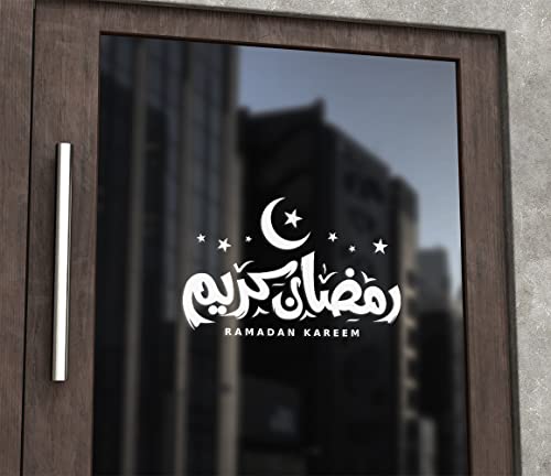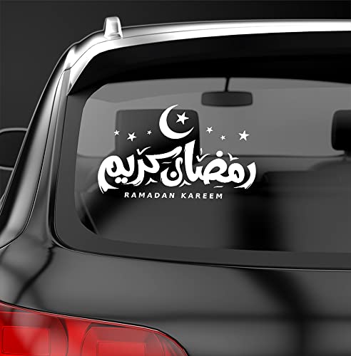 Generic - ستيكر للسيارة , بادجات , استيكر سيارات , لزجاج السيارة و أبواب الغرف و الحائط , رمضان كريم , لون ابيض , بالاضافة لعدد 1 استيكر هدية