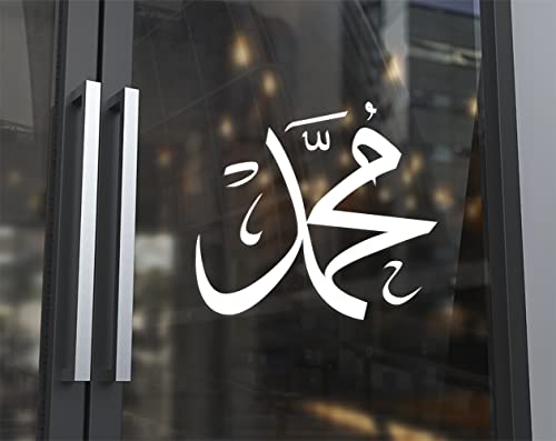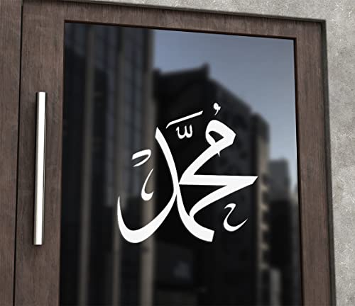 Generic - ستيكر للسيارة استيكر بادجات سيارات لزجاج السيارة و أبواب الغرف الحائط للزجاج سيدنا محمد نبي الله اسلامي لون ابيض بوليستر