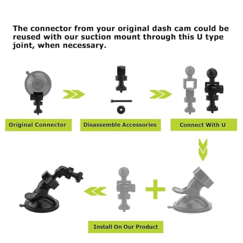 - توافق متعدد المحولات: يأتي مع محولات متعددة لتناسب مختلف مسجلات الفيديو الرقمية والكاميرات وجي بي اس. يعمل مع العلامات التجارية الشهيرة مثل ريكسينج، واي اي، ويويتنس، إلخ. لا حاجة لشراء حوامل منفصلة - حل واحد لجميع أجهزتك، مما يوفر التكلفة والمتاعب.