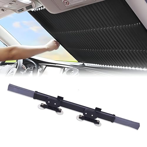 Generic - شمسية السيارة - توفر الستارة العاكسة القابلة للسحب للزجاج الأمامي للسيارات حماية من الأشعة فوق البنفسجية بنسبة 99% وتتميز بأربع طبقات من مادة عالية الكثافة، بما في ذلك رقائق الألومنيوم.