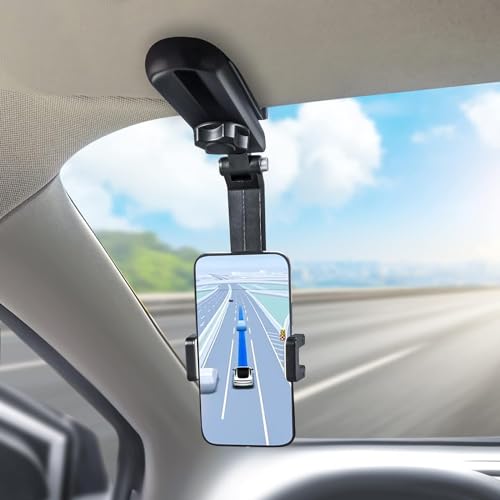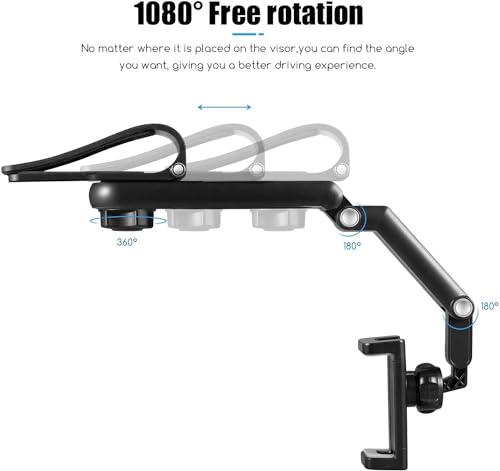 Generic - مشبك حامل موبايل يثبت على حاجب الشمس للسيارة، بملاءمة عالمية وقابل للتعديل يثبت على واقي الشمس في السيارة والتابلوه