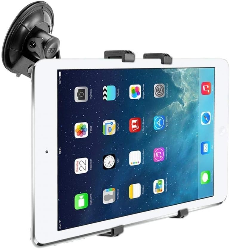 - حامل الزجاج الأمامي للتابلت هذا مصنوع من مادة متينة ويتميز بقاعدة شفط بقطر 9 سم لتركيب آمن بشكل استثنائي لجهاز التابلت الخاص بك على معظم لوحات العدادات والزجاج الأمامي والطاولات وما إلى ذلك.