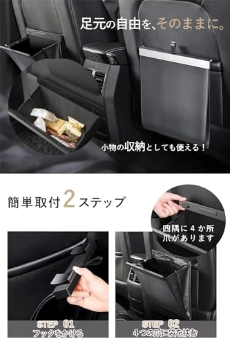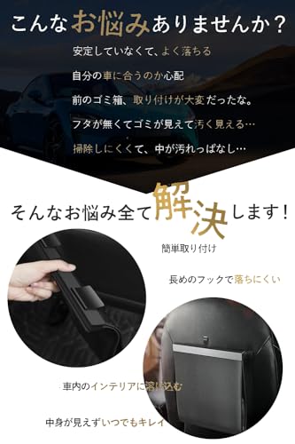 WejaGO - سلة مهملات للسيارة مع خطافات للمركبات المتعددة، سلة مهملات يمك استخدامها للتخزين في السيارة، شنطة تعليق متضمنة (أسود)