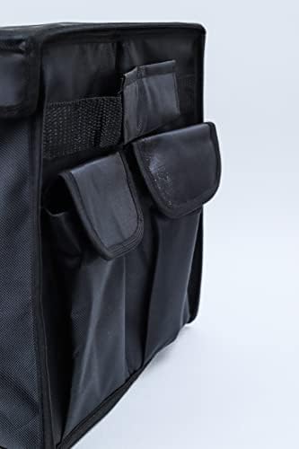 - صندوق تخزين منظم لصندوق السيارة قابل للطي، مع جيوب صغيرة، حجرات حاوية للحمولة، منظم للاحذية وارضية ضد الانزلاق للسيارات الرياضية والفان والتخييم والنزهة والادوات والجراج، اسود*الوان متعددة (شيري)