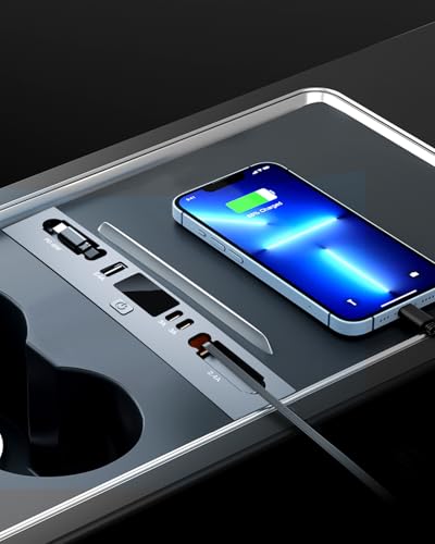 - 【التوافق】 مصمم خصيصًا لسيارة تسلا موديل Y (2025-2026 جونيبر) والموديل 3 (2024-2025 هايلاند). ملاحظة، قبل الشراء، تأكد من أن منفذ إمداد الطاقة في صندوق التخزين الخاص بسيارتك هو منفذ إمداد طاقة لولاعة السجائر