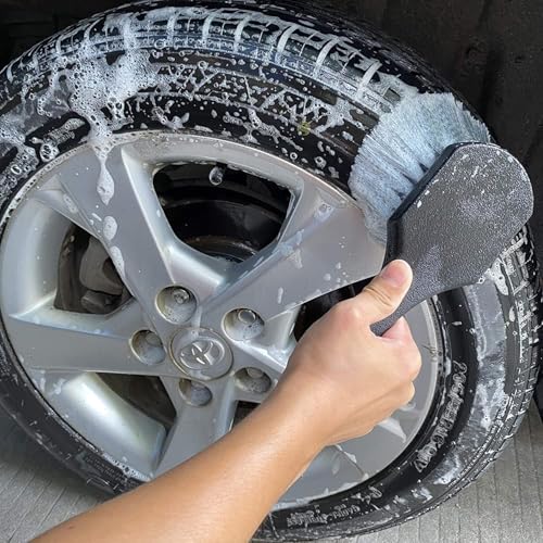 Generic - فرشاة تنظيف عجلات واطارات السيارات، فرشاة غسيل السيارات بشعيرات ناعمة، تنظف الاطارات وتتخلص من الاوساخ وسخام الطريق، مقبض قصير من اجل