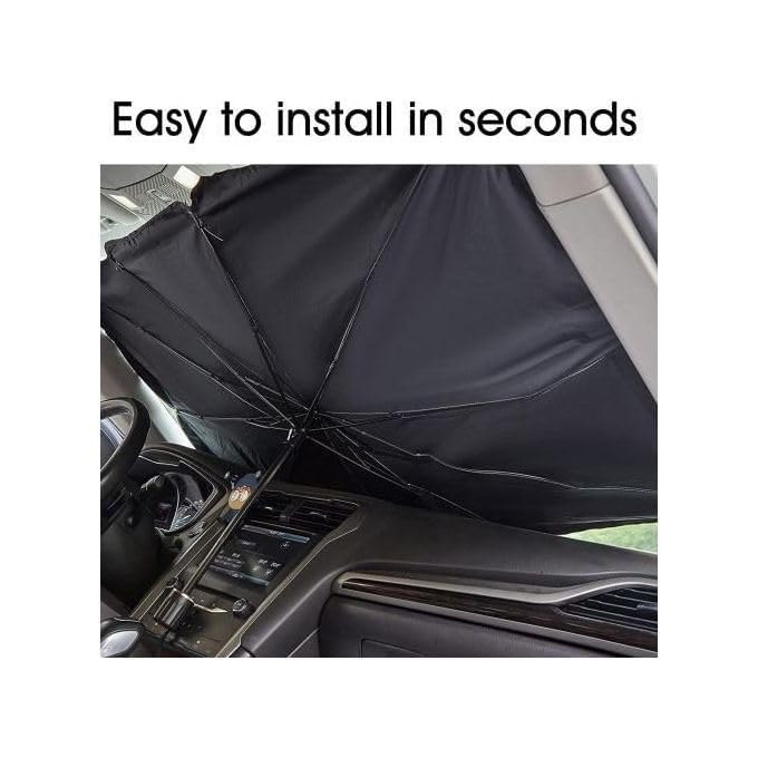 - تم تصميم المظلة لتناسب الزجاج الأمامي للسيارة، مما يوفر تظليلًا أفضل ويقلل من درجة حرارة السيارة.