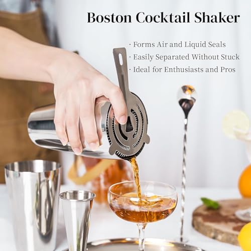 Generic - شيكر كوكتيل مع كوب قياس سهل الاستخدام وملعقة خلط 25.4 سم وشيكر بوسطن ومصفاة ثنائية النتوءات للمحترفين من كاراسكو، 4 قطع