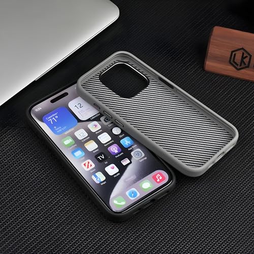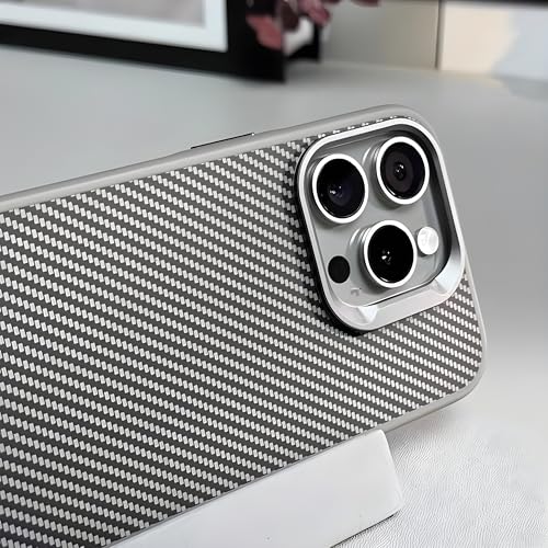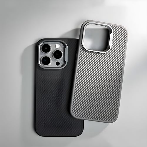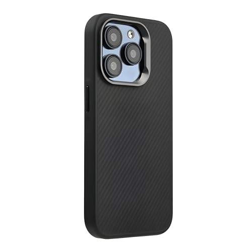 Next store - جراب حماية من ألياف الكربون متوافق مع iPhone 15 Pro Max، تصميم فاخر بمزيج من الألياف الناعمة وإطار كاميرا معدني، مقاوم للصدمات والسقوط, مقاوم للماء والبصمات (أسود)