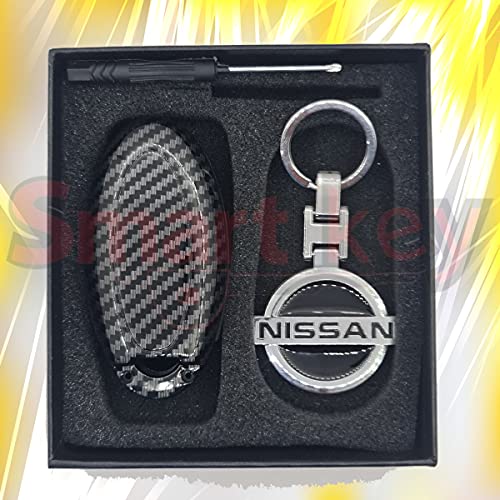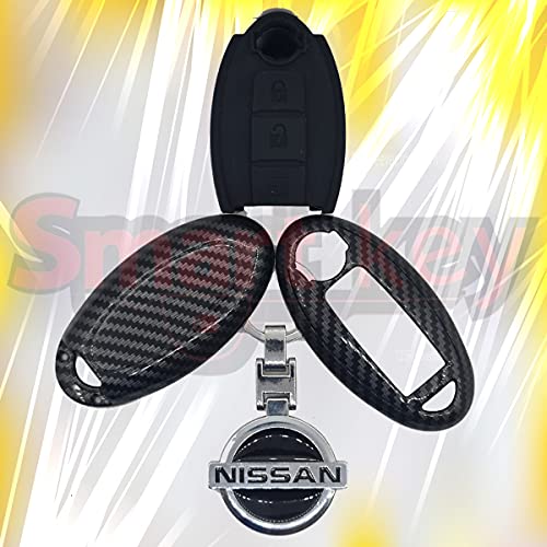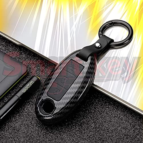 SMARTKEY - غطاء مفتاح فوب ذكي من ألياف الكربون + زر سيليكون بـ3 أزرار - غطاء مفتاح التحكم عن بعد (كفر - هاوسنج) من الكاربون للسيارات