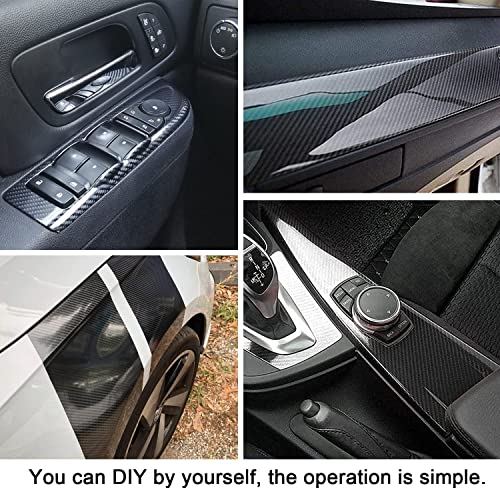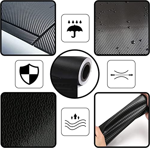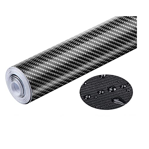 Brandless - شريط فينيل من ألياف الكربون مع أدوات الكشط البلاستيكية، شريط لاصق فينيل ذاتي اللصق للسيارات والموتوسيكلات والديكور الداخلي والخارجي بتأثير نسيجي 6D - لون أسود - مقاس 3 م × 30 سم