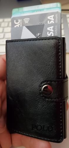 - 【مظهر نحيف وجميل】مسطح 16 ملم فقط. تصميم رفيع وعصري يجعل حامل البطاقات يبدو أكثر أناقة وكلاسيكية. تحتوي على جيب معدني مع زر منبثق يمكنه حمل حوالي 5-6 بطاقات، بالإضافة إلى جيبين إضافيين في المحفظة يمكن استخدامهما للبطاقات الأخرى (رخصة القيادة وبطاقة التأمين وما إلى ذلك)، وحجرة لحمل القليل من النقود أو الفواتير. هذه المحفظة الصغيرة تحمل كل ما تحتاجه!