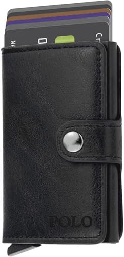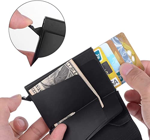 Generic - حامل بطاقات منبثق ائتمان بخاصية حجب تقنية تحديد الهوية بموجات الراديو محفظة رفيعة من جلد البولي يوريثين بتصميم فينتاج الالومنيوم مع خاصية الانزلاق الجانبي التلقائي امان للسفر
