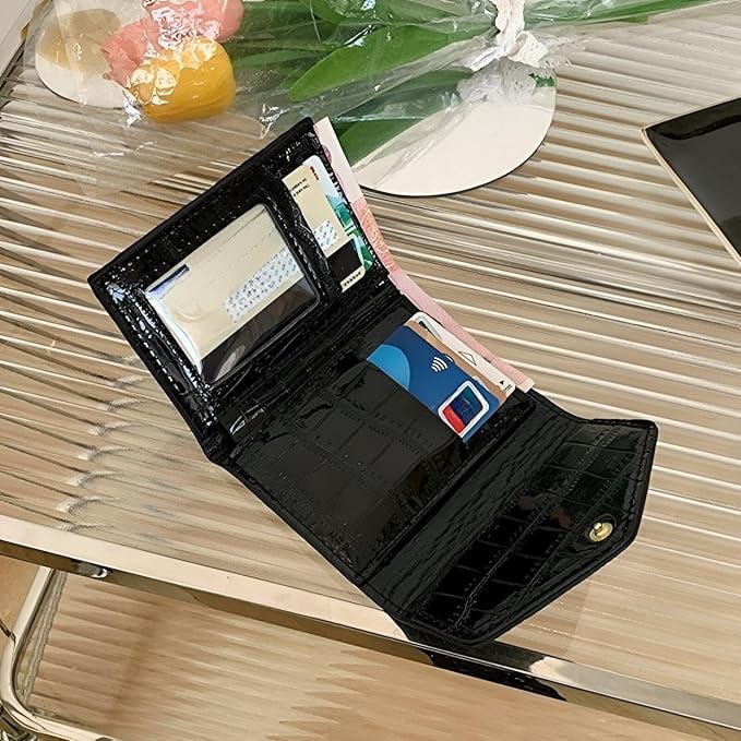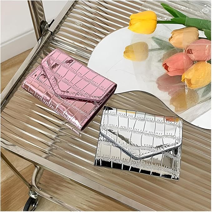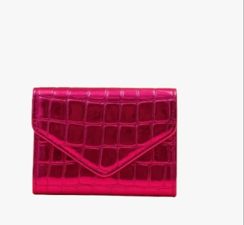 - خامة فاخرة: جلد صناعي زهري معدني فاخر يتميز بنسيج نمط تمساح أصلي ولمسة نهائية شديدة اللمعان لمظهر راقي