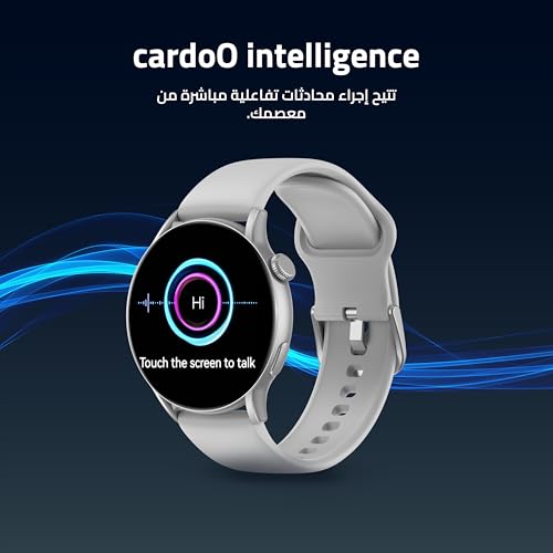 CardoO - ساعة ذكية اكس اوربيت بشاشة اموليد دائرية 1.63 بوصة من كاردو، مكالمات بلوتوث، تتبع اللياقة البدنية مع مراقبة القلب والنوم والأكسجين، اكثر من 100 وضع رياضي، مقاومة للماء، متوافقة مع iOS وأندرويد - فضي