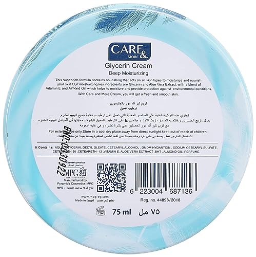 Care & More - كريم مرطب عميق بالجلسرين من كير اند مور، 75 مل (عبوة من قطعتين)