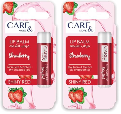 Care & More - مرطب شفاه بالفراولة من كير اند مور، 4 غرام (عبوة من قطعتين)