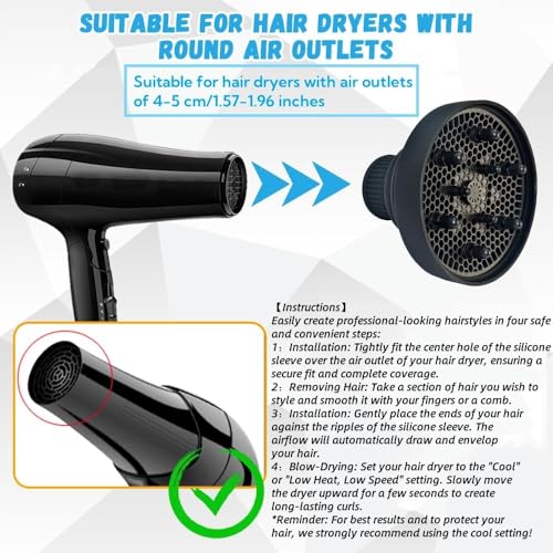 - [اصنعي تسريحة شعرك]: استخدمي موزع مجفف الشعر المصنوع من السيليكون للحصول على تصفيفة شعر مثالية، سواء كان لديك شعر ناعم أو سميك أو مجعد أو متموج. لا يجفف شعرك ويضيف حجمًا فحسب، بل يحافظ أيضًا على تجعيداتك الطبيعية طوال العملية، مما يجعل تصفيفك أكثر طبيعية ونعومة وخاليًا من التجعد.