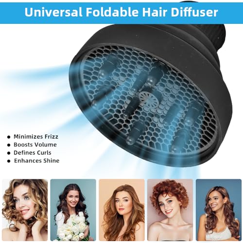 CAREDGO - موزع ومجفف شعر من السيليكون كيردجو مرفق مجفف أسود غطاء الشعر قابل للطي سهل الحمل للسفر للشعر المجعد