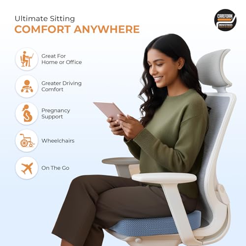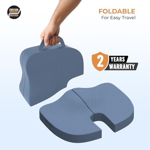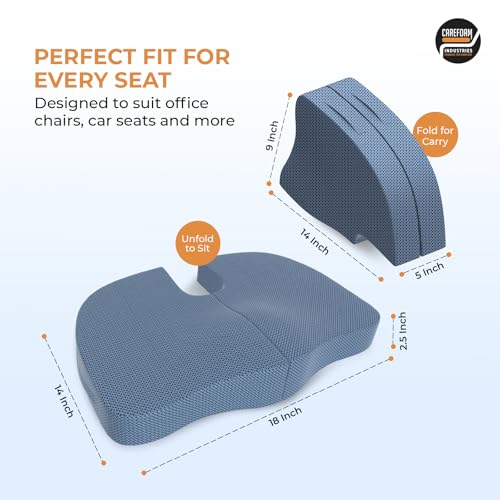CareFoam - وسادة مقعد العصعص القابلة للطي من كير فوم - اول مقعد هندي قابل للطي لتقويم العظام لتخفيف الام عظم الذنب ودعم وضعية الظهر والاستخدام اثناء السفر - تصميم مريح محمول لكرسي المكتب
