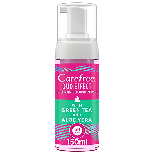 Carefree - موس التنظيف اليومي للمناطق الحميمة ذو التأثير الثنائي من كيرفري مع الشاي الأخضر والصبار، 150 ml