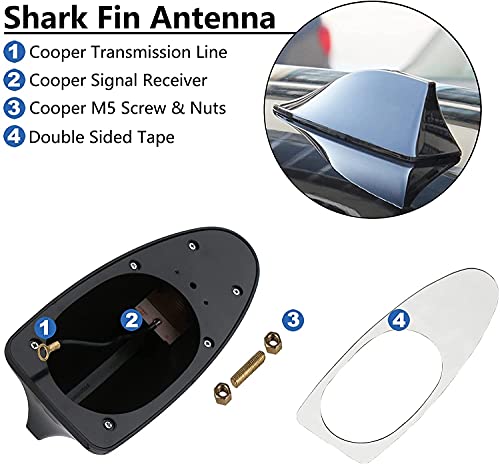 CarFrill - اريال راديو سيارة من كارفريل، اريال سقف بشكل زعنفة قرش بقاعدة للاريال واشارة راديو اف ام، لون السيارة الاصلي، اريال راديو مزخرف من مادة ABS بطلاء زاهي للسيارات وسيارات الدفع الرباعي والشاحنات (اسود)