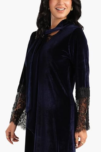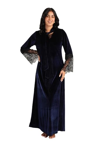 CARINA - كارينا قميص نوم ماكسي مخملي ودانتيل، مقاس XXL