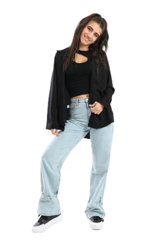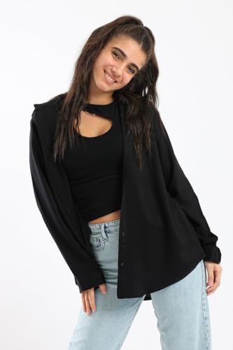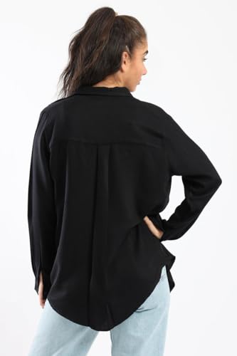 CARINA - قميص بفتحة بكامل الطول للنساء بتصميم بطول غير متساوي من كارينا، أسود، سمول
