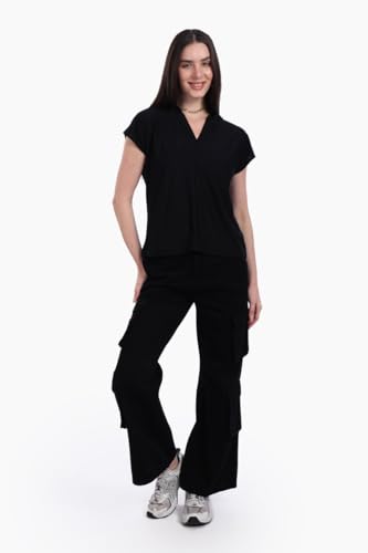 CARINA - بلوزة كريب من كارينا للنساء، لون أسود