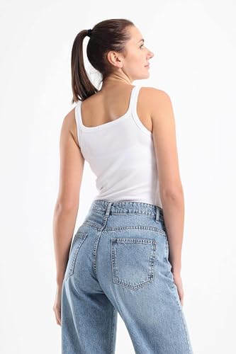 CARINA - كارينا بلوزة مضلعة برقبة دائرية للنساء - مقاس 2XL - ابيض