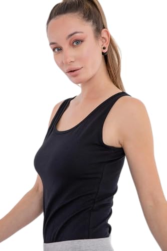 CARINA - توب كات قطن سادة للنساء من كارينا، اسود، مقاس XL