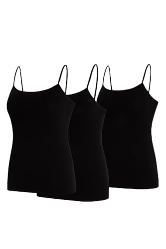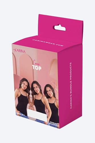 CARINA - كارينا توب كامي بدون خياطة من المايكروفايبر للنساء (عبوة من 3 قطع) S-M اسود