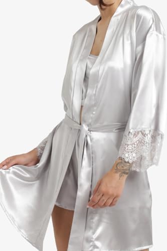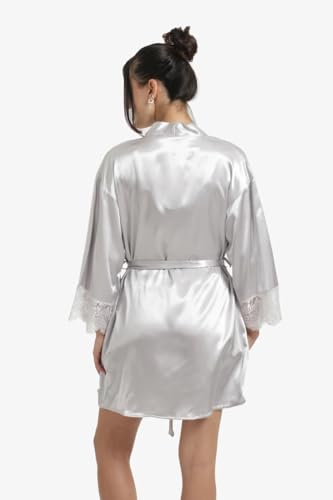 CARINA - كارينا روب ساتان بحواف دانتيل بلون فضي للنساء
