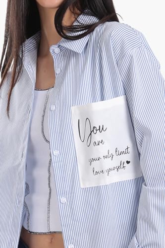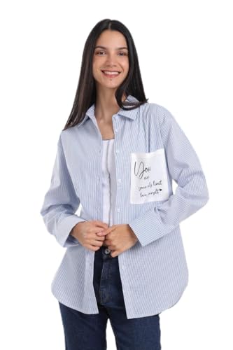 CARINA - قميص مقلم مع جيب مزين بطباعة للنساء من كارينا
