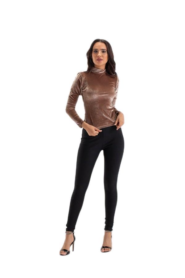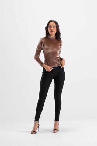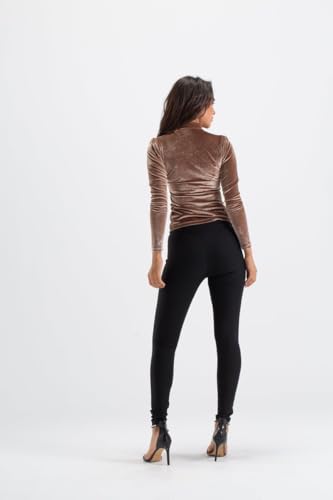 CARINA - بلوزة قطيفة بكتف منفوخ للنساء من كارينا، L، بني