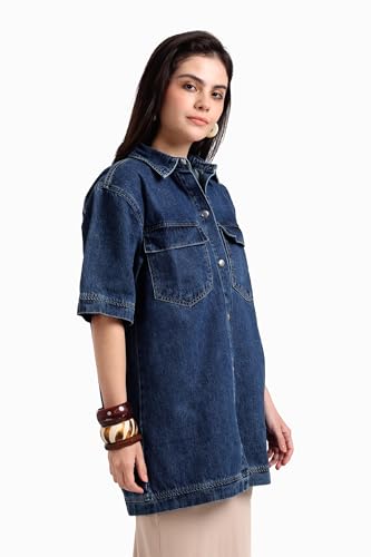 CARINA - قميص جينز بجيوب بغطاء بتصميم حديث للنساء من كارينا (مجموعة من قطعة واحدة)