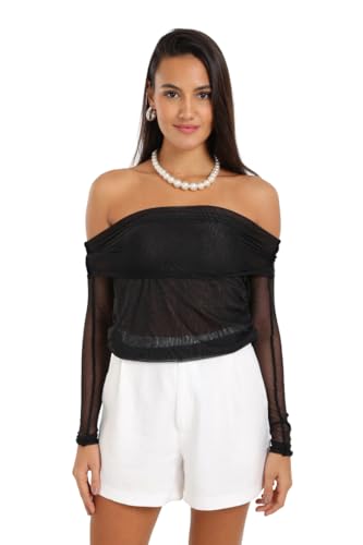 CARINA - بلوزة شبكية بكتف مكشوف للنساء بنمط مواكب للموضة كارينا